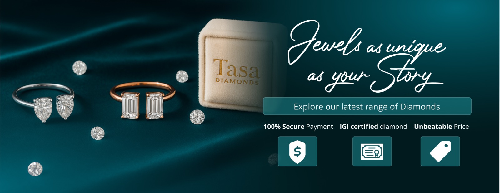 Did you know natural diamonds come with a huge markup because of their limited supply? At Tasa, we use Lab-grown diamonds because they are just as dazzling, durable, and visually identical to naturally formed ones.